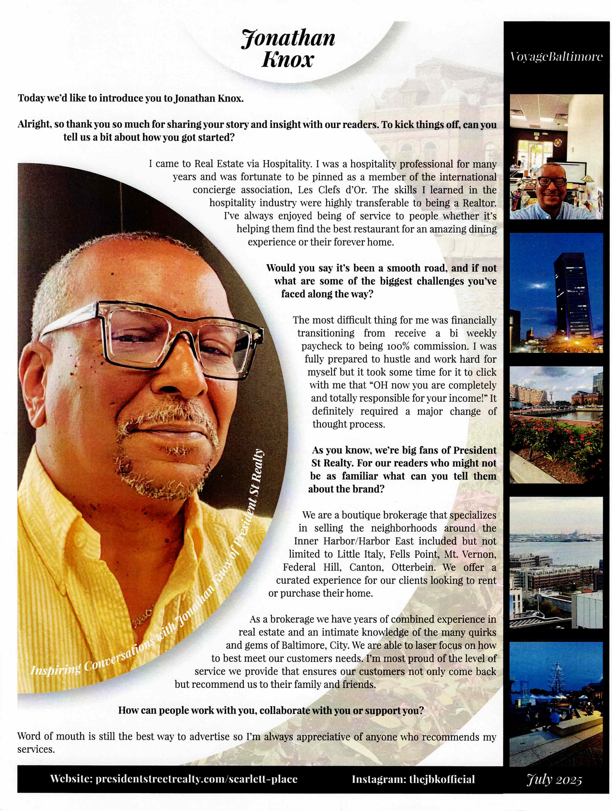 With deep, hyper-local knowledge of Baltimore City and its diverse neighborhoods, Jonathan is passionate about helping clients navigate their real estate needs. While his specialty lies in the condominium market in the Inner Harbor, Harbor East, Fells Point, Federal Hill, and Mt. Vernon, he is equally committed to finding the right home anywhere in Maryland. If he is not already familiar with a particular area, he will thoroughly research market trends or connect you with a trusted local expert.